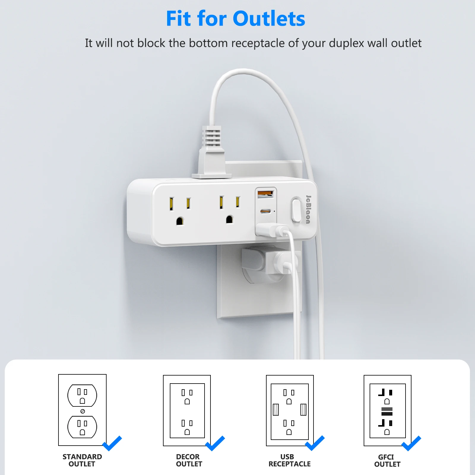 360°Rotating Power Strip with 6 AC Outlets