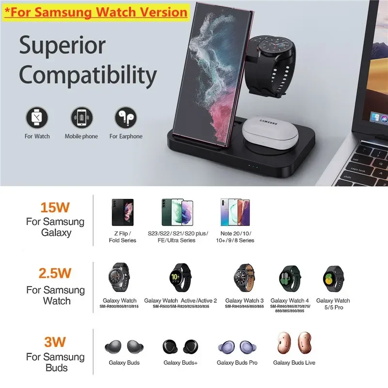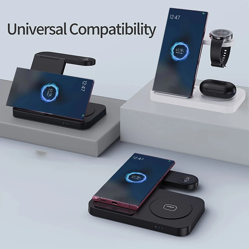 Portable & foldable travel charger stand:The charging station for iphone is foldable, light and portable, and can be put in a bag or suitcase. This wireless charging pad is not only suitable for your home, office, if you are traveling or on a business trip, bring this 3in1 charger, which can charge multiple devices at once. Also, Versatile as a cell phone stand with angle adjustment. it's as a charging pad, just leave the phone flat to keep it charging.