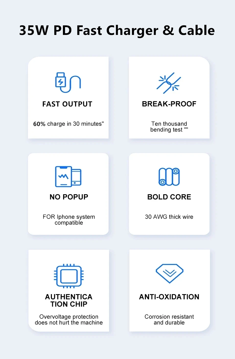 US Plug 35W PD Fast USB-C Charger For iPhone 11 12 Mini 13 14 Pro Max X XR XS Max 7 8 Plus SE 2020 Rapid Charging Phone Charger Cable 1m 1.5m 2m